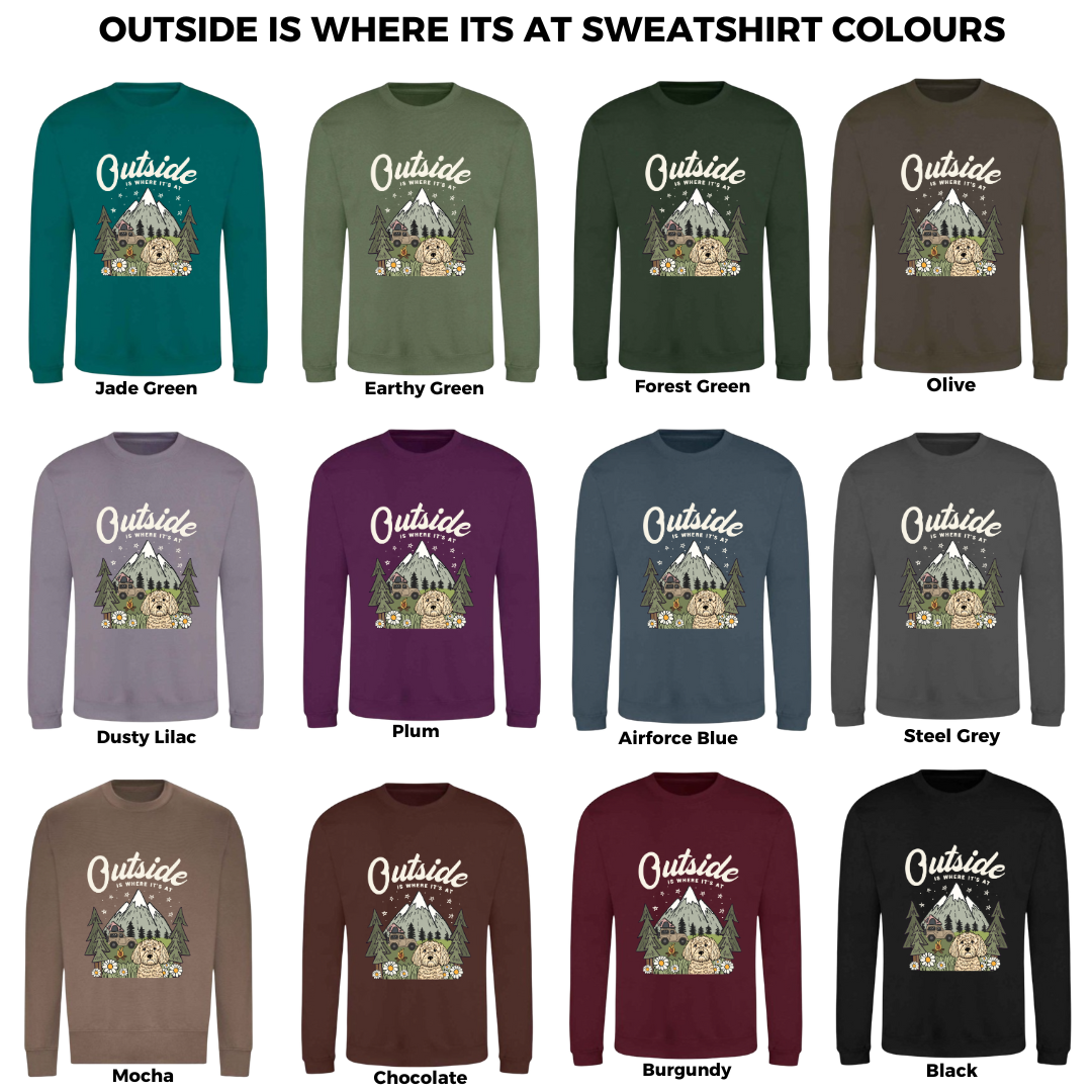 Embrace the outside with this cosy Outside is Where it's At sweatshirt! Perfect for those who live for the outdoors and want to stay warm while exploring with their adventure companion.