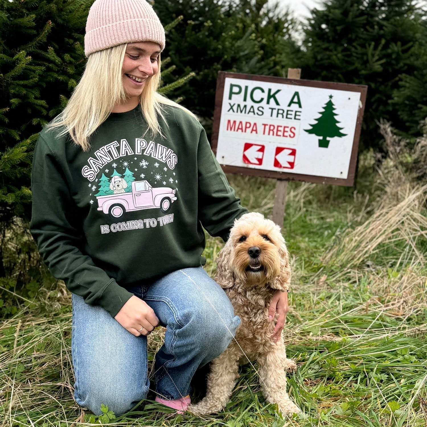 The paw-fect Christmas tree picking jumper does exist. This jumper proves pink and green should always be seen. 💕 Personalise the design with your pet in our hand drawn Christmas tree truck! A must have for Christmas jumper day. Did you know you can add extra pets.