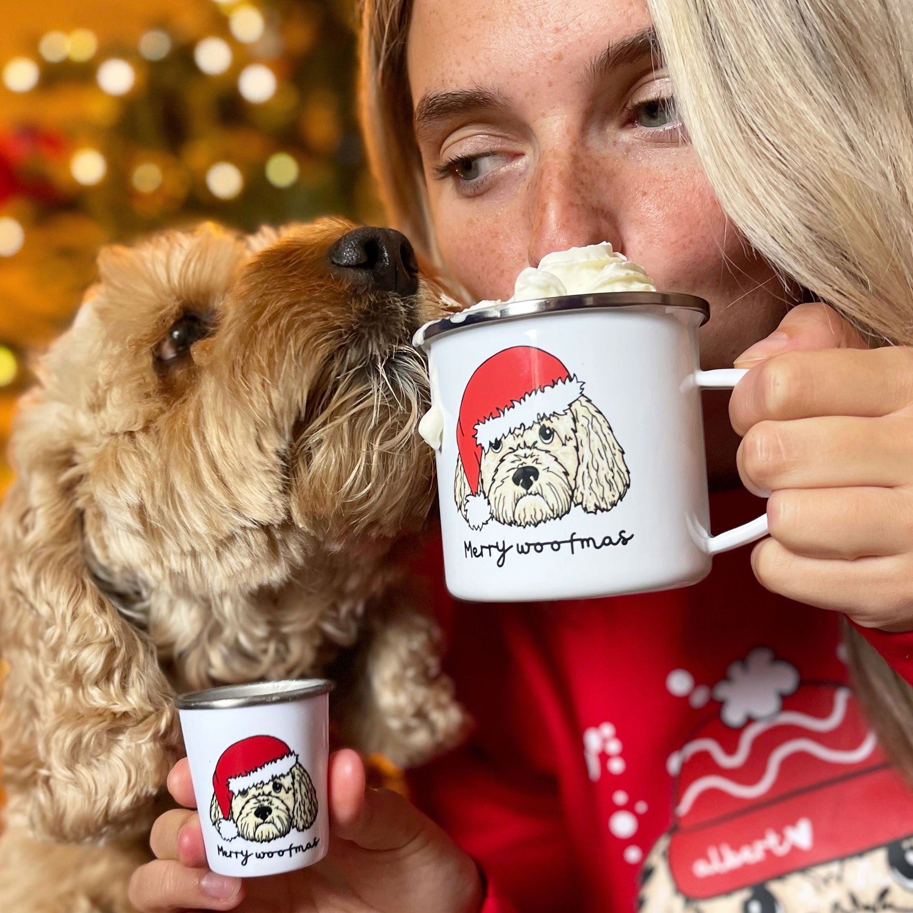 Treat you and your pup to the cutest festive 'matchy matchy' set of cups. Perfect for cosy nights in and festive treats. The set consists of the scratch resistant mini pup cup and the larger enamel cup. Both mugs will be printed with an image of your pup in a festive Christmas hat.