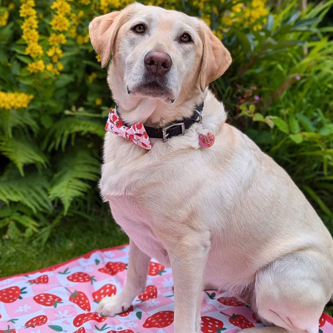 The cutest bow-tie printed with our strawberry pattern. Your pup will look berry-licious in this. Attach round the collar using the velcro