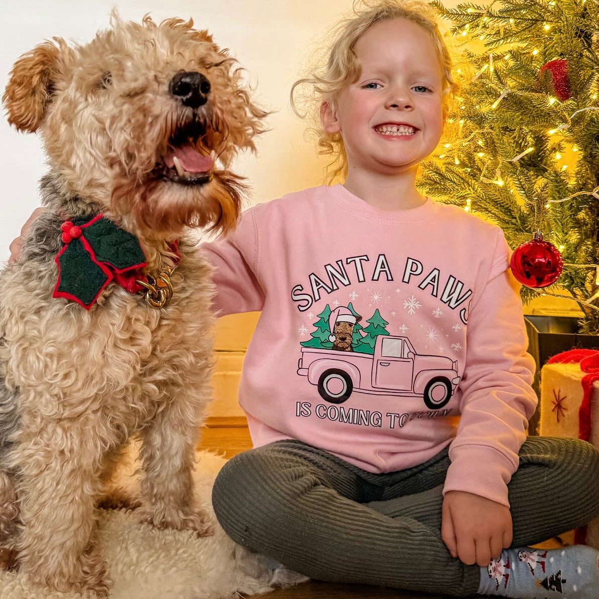 Make Christmas magical for little ones with this adorable 'Santa Paws' sweatshirt featuring their beloved pet! Perfect for children who want to include their furry friends in the festive celebrations.
