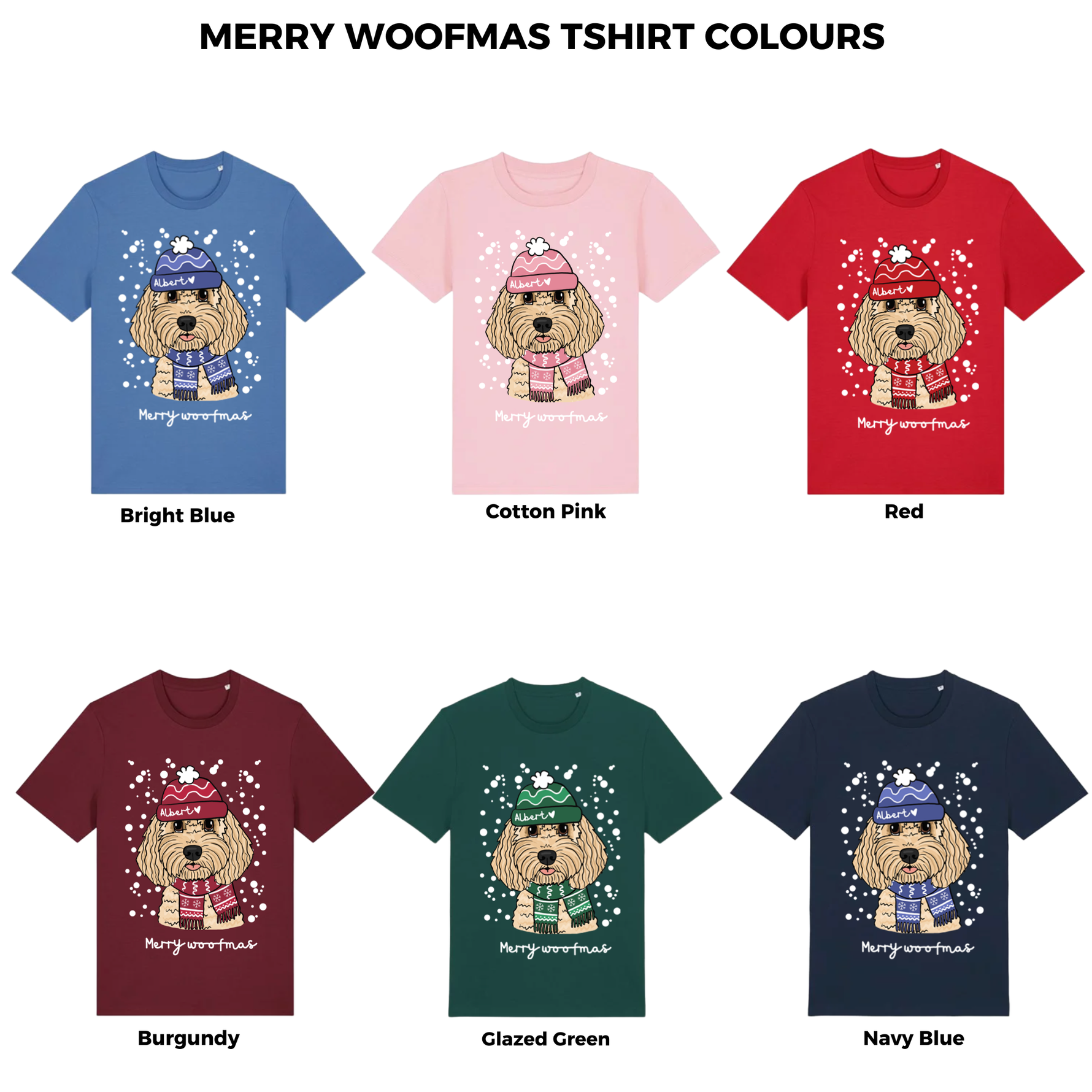 Personalise this adorable adorable Merry Woofmas Christmas T-shirt featuring your beloved pet/s! Perfect for pet lovers who want to celebrate the festive season.