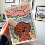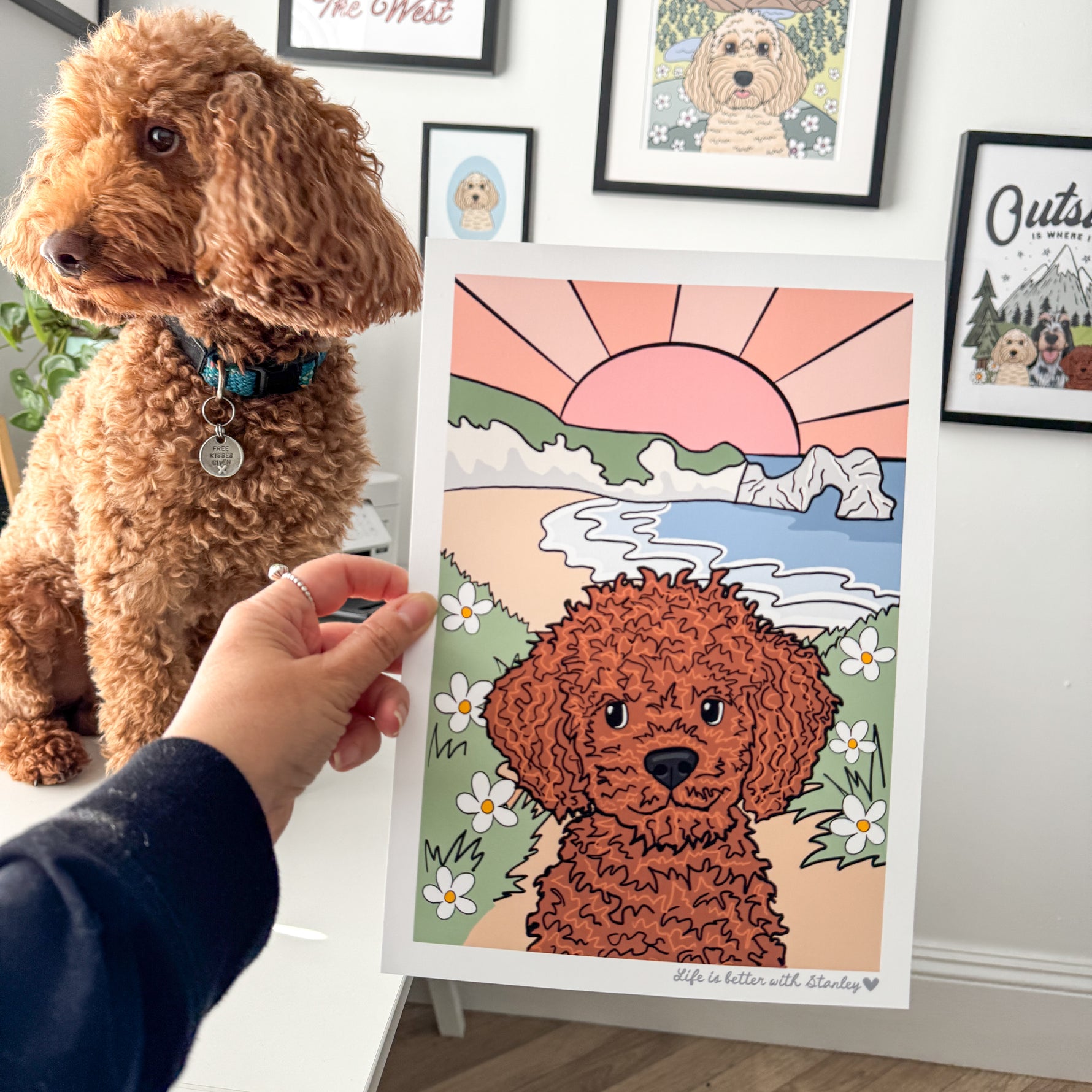 The artwork can be personalised with any of our pet illustrations and extra pets can be added to the design too. To add an extra special touch you can add a your pets name to the bottom of the print.