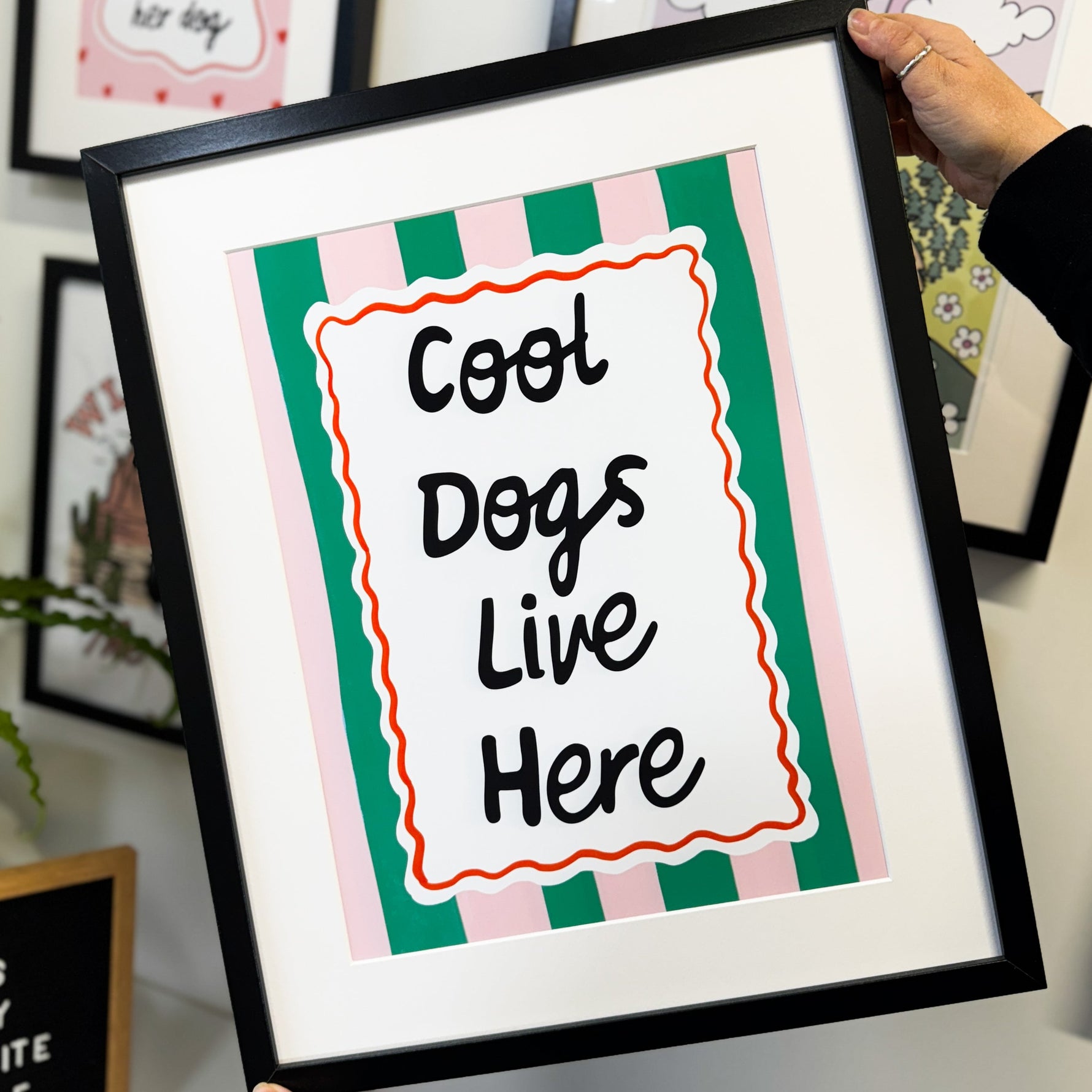 Featuring bold green and pink stripes with a hand-drawn border, this print brings personality and charm to any dog lover's home. It's part of our new collection but works perfectly on its own too.