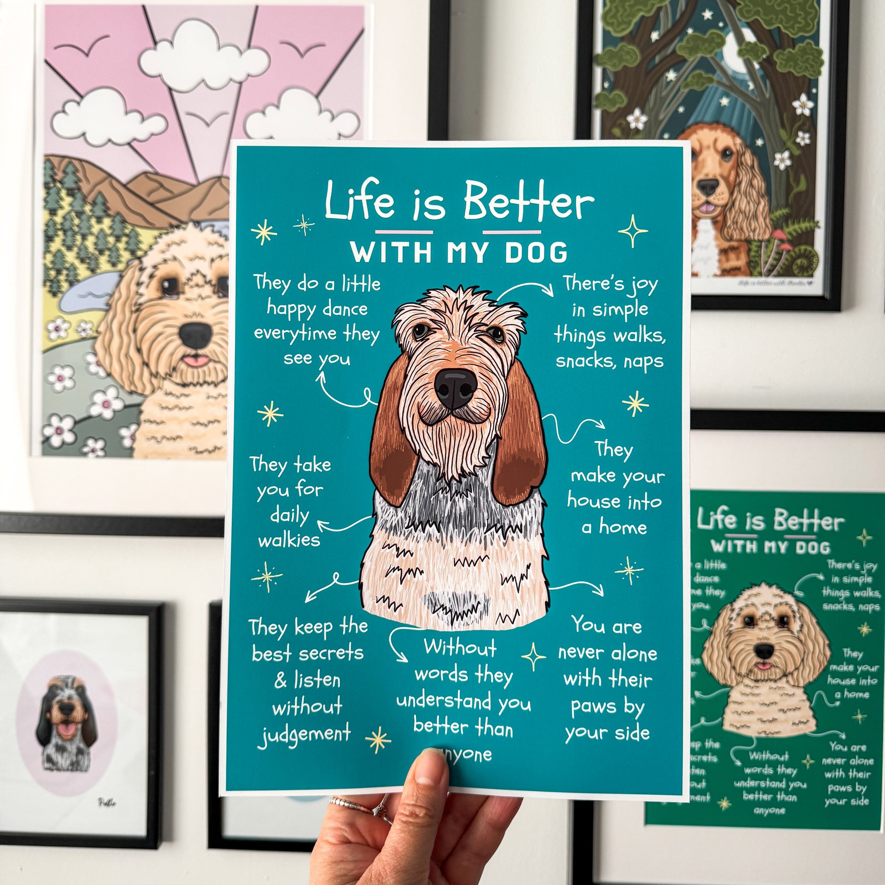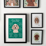 Featuring beautiful hand-drawn dog illustrations with sweet annotations about why our dogs make everything better. Have Multiple Pets?Don't worry you can add extra dogs onto the print.
