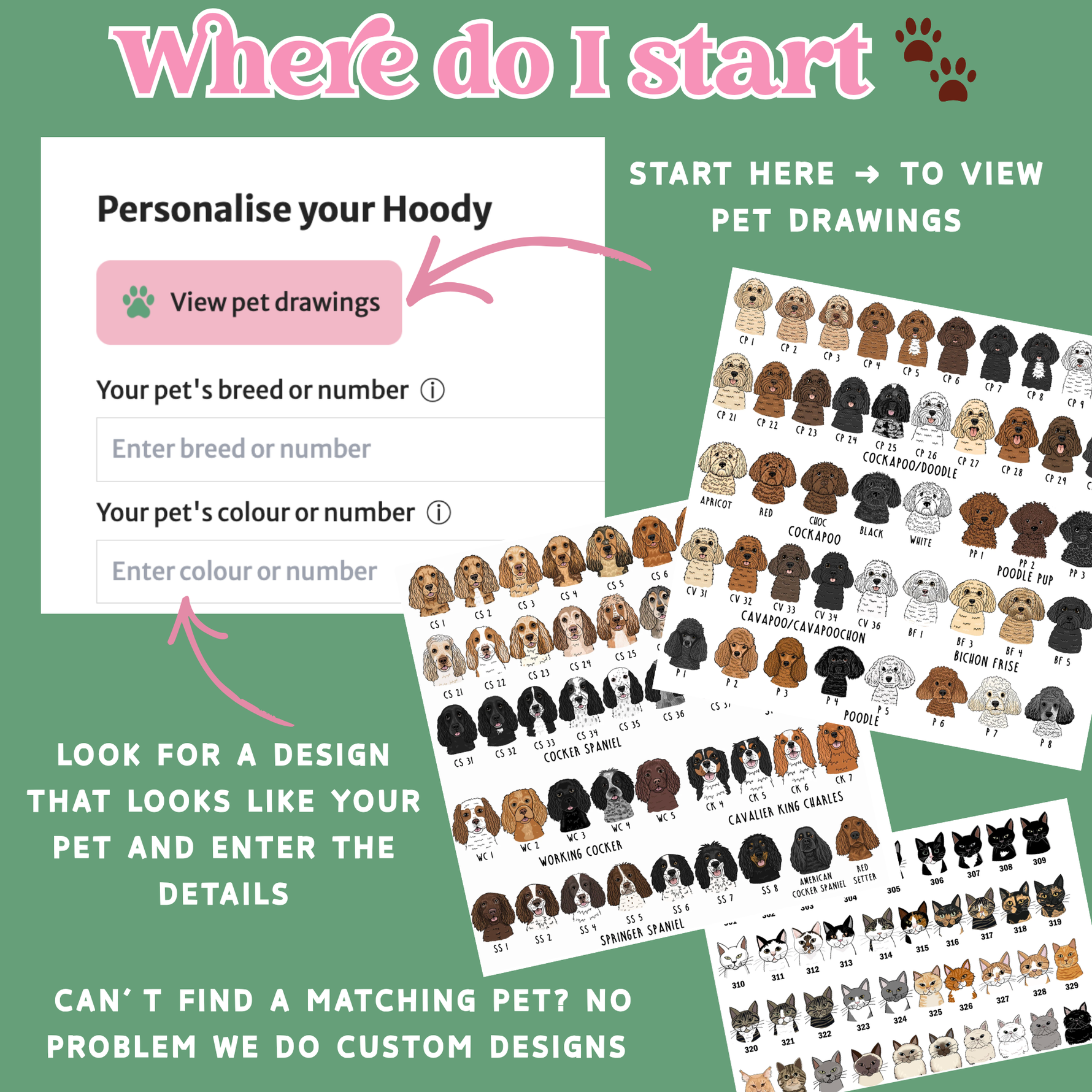 Browse our personalisation sheets below the product title to find a pet that looks like yours. Once you've found the perfect match, simply enter your pet's details into the option boxes.