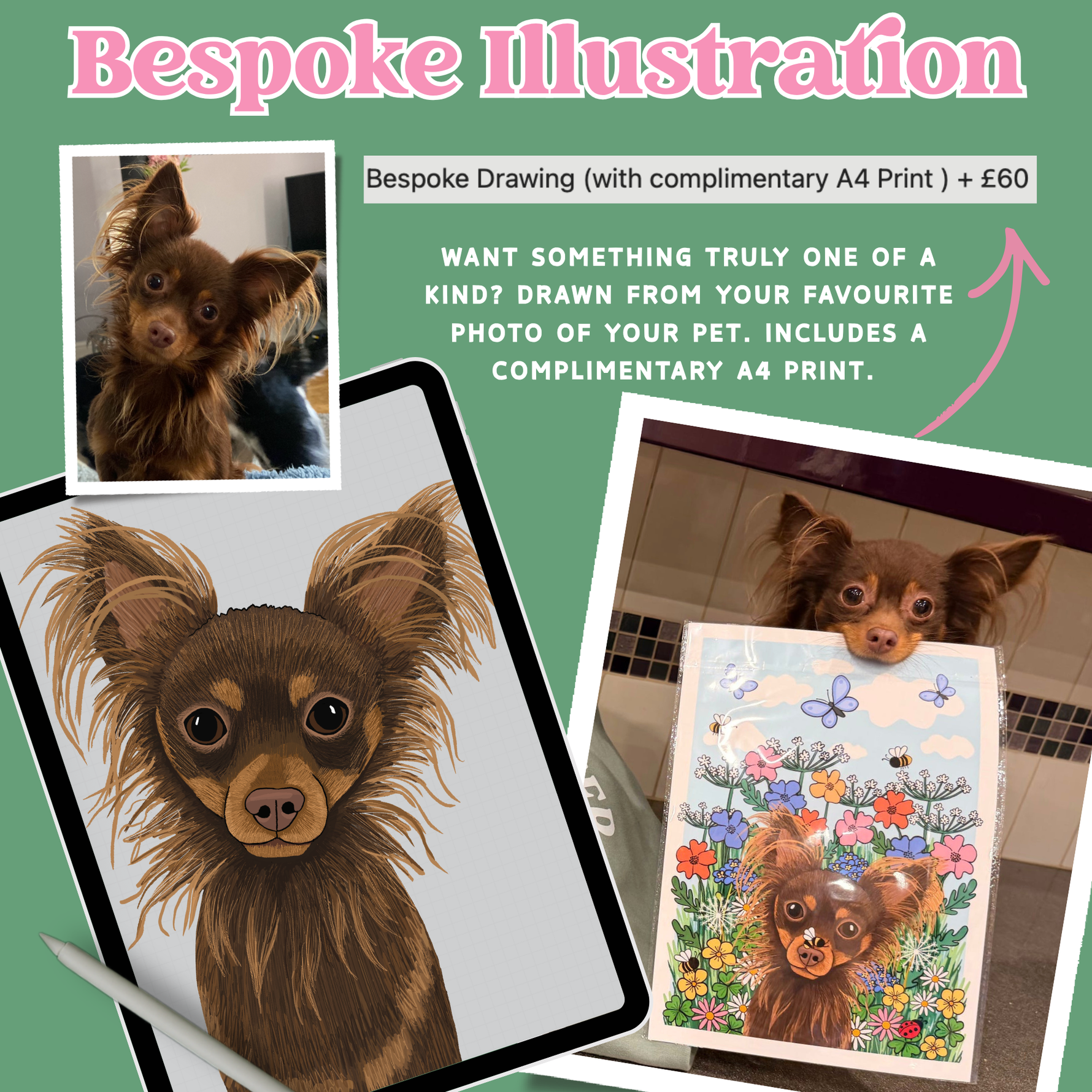 For a brand new bespoke drawing of your pet click here to purchase, then select use my custom in the item listing.