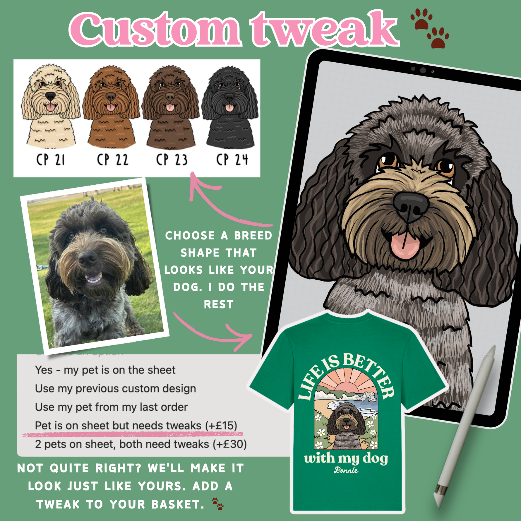 Found something close but need a small tweak? No problem! Add a "tweak" to your basket, leave us a note at checkout with your instructions, then email your pet's photo to contactsydandco@gmail.com